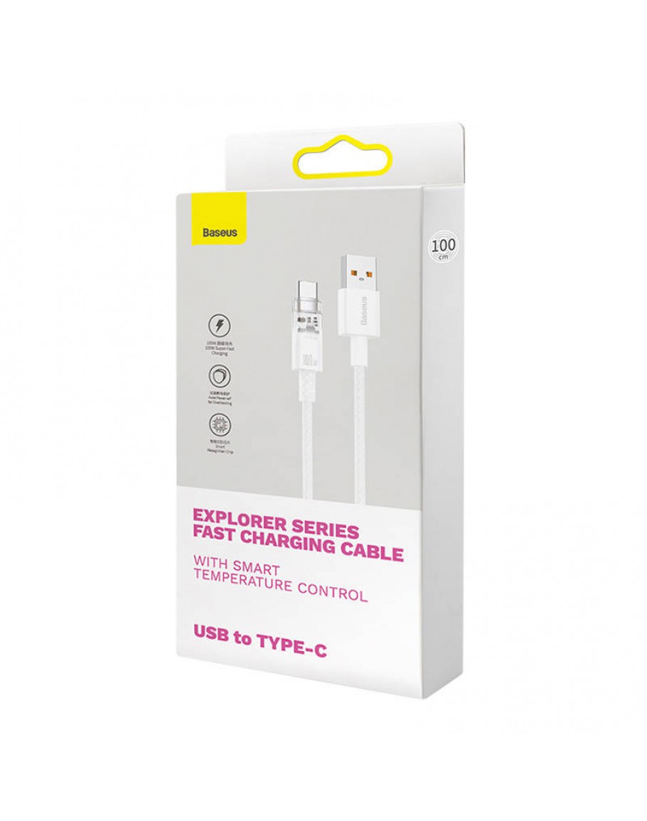 Кабел за данни Baseus Explorer, Type-C, 100W, 1.0m, Бял - 40440
