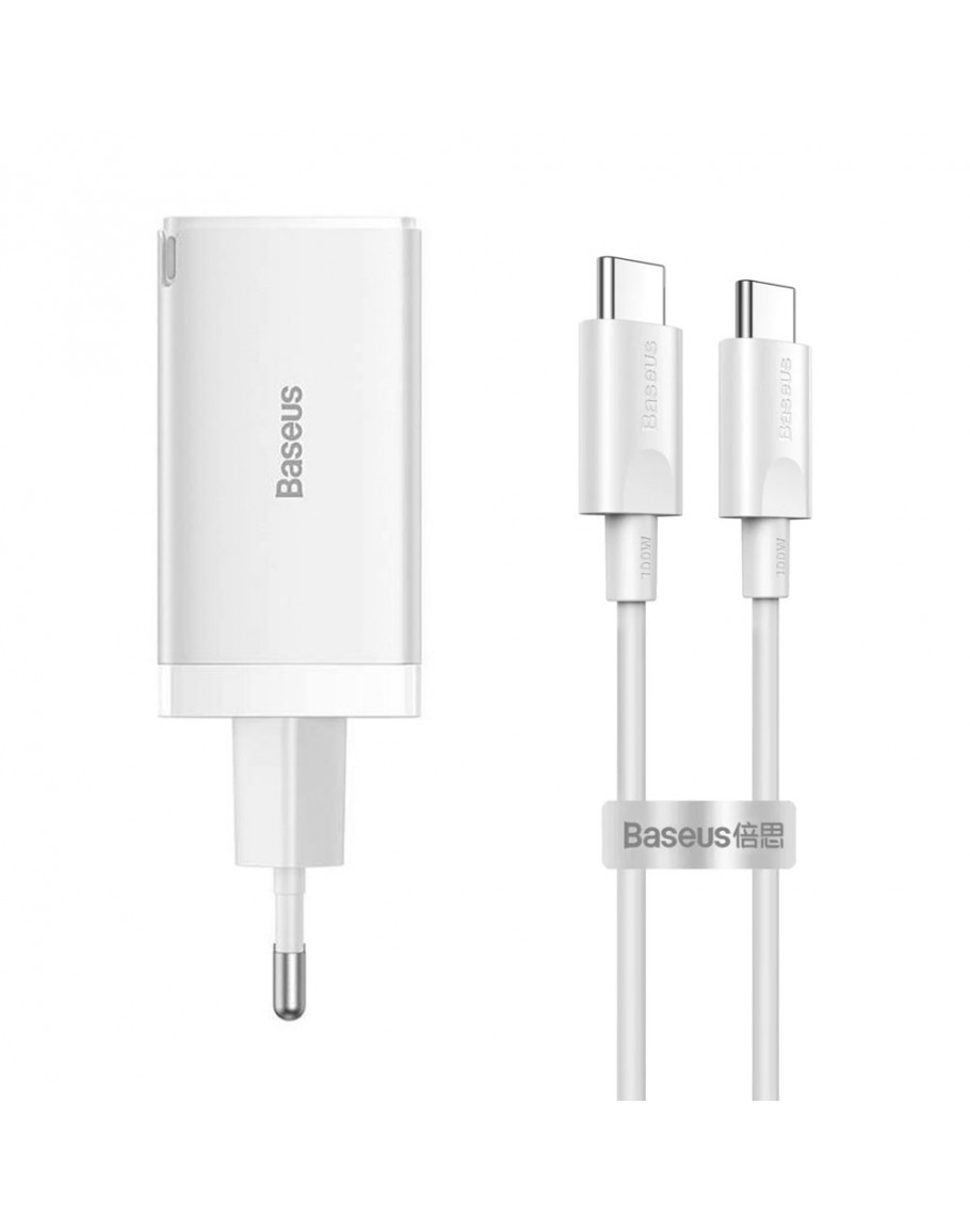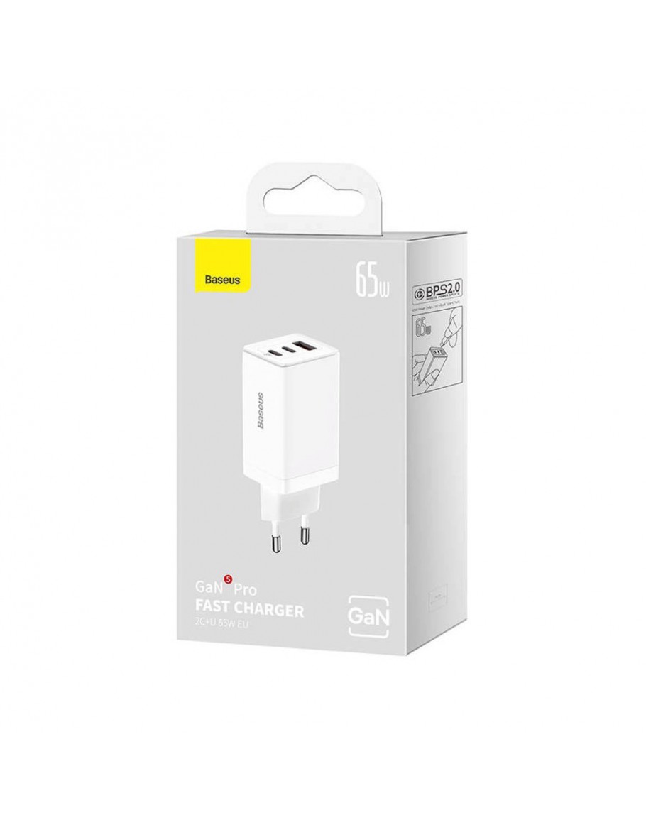 Мрежово зарядно устройство Baseus GaN5 Pro Fast, 65W, С PD кабел, Бял - 40410