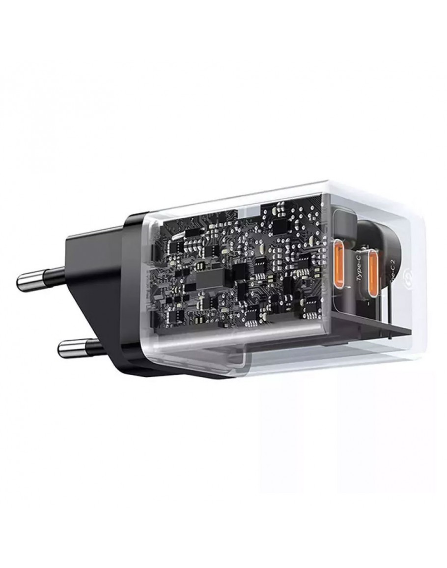 Мрежово зарядно устройство Baseus GaN5 Pro Fast Charger, 40W 2 x Type-C F с усъвършенствана GaN технология и контрол на температурата, ефективно и бързо зарежда вашето устройство. Проектирано за отлична производителност на всичките ви устройства, то предлага несравнима съвместимост на зареждане с лаптопи, таблети и смартфони. Компактният и преносим дизайн заема минимално място на разклонителите и е лесен за носене. С двоен порт USB-C за зареждане на две устройства едновременно без никакви смущения. Нискотемпературното бързо зареждане предотвратява прегряването. Вградените високоефективни компоненти подобряват степента на преобразуване на енергийната ефективност, като същевременно поддържат нормалната работна температура, безопасна и без прегряване.