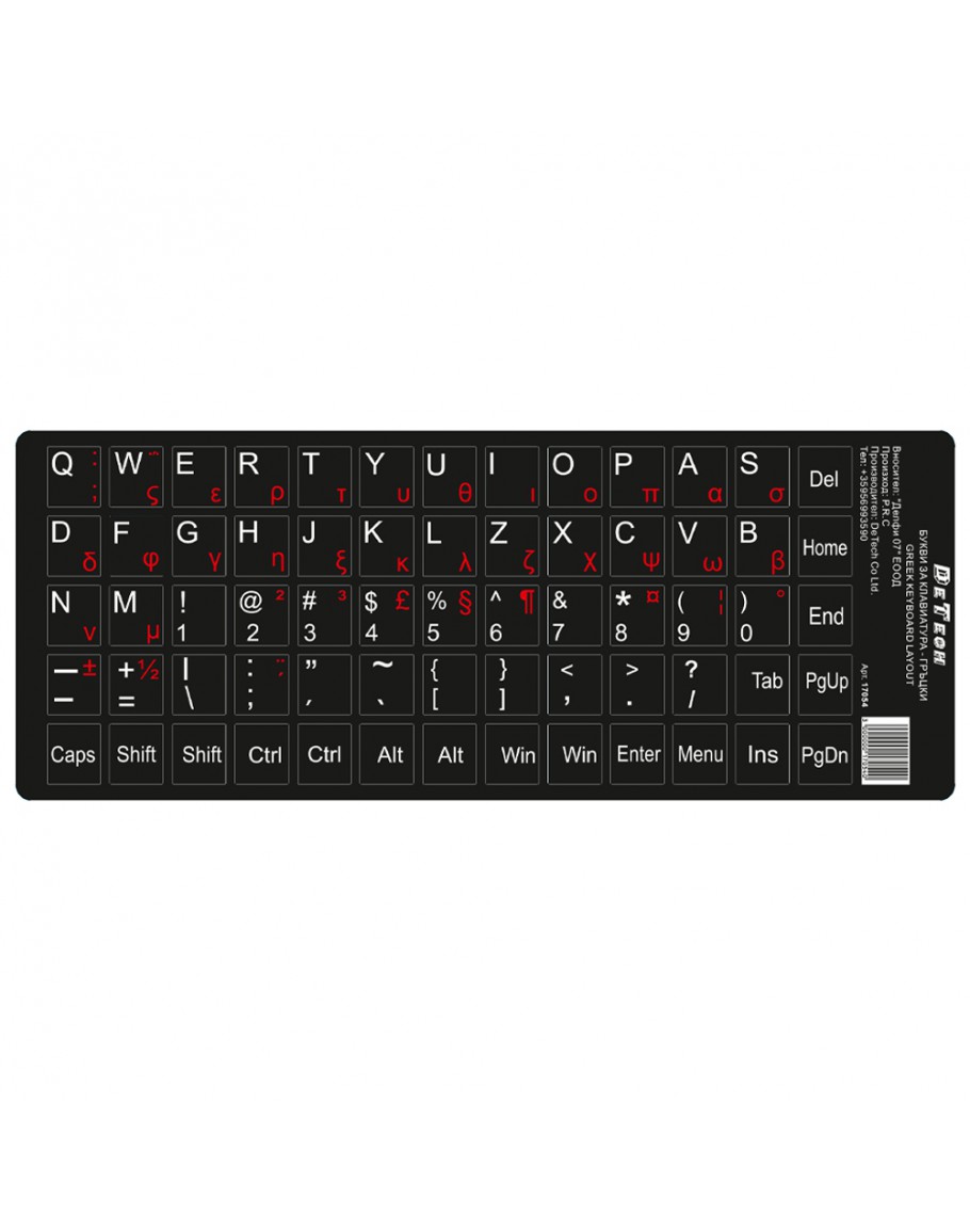 Букви за клавиатура DeTech, Гръцки език и латиница, Черен - 17054