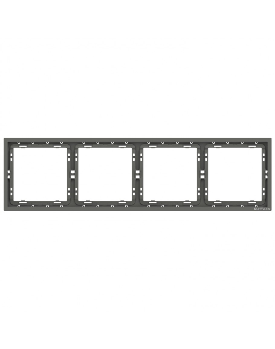 Хоризонтална рамка в сив цвят и висококачествено матово покритие. За комбиниран монтаж на четири електрически модула от серията DE-9227 на DeTech.