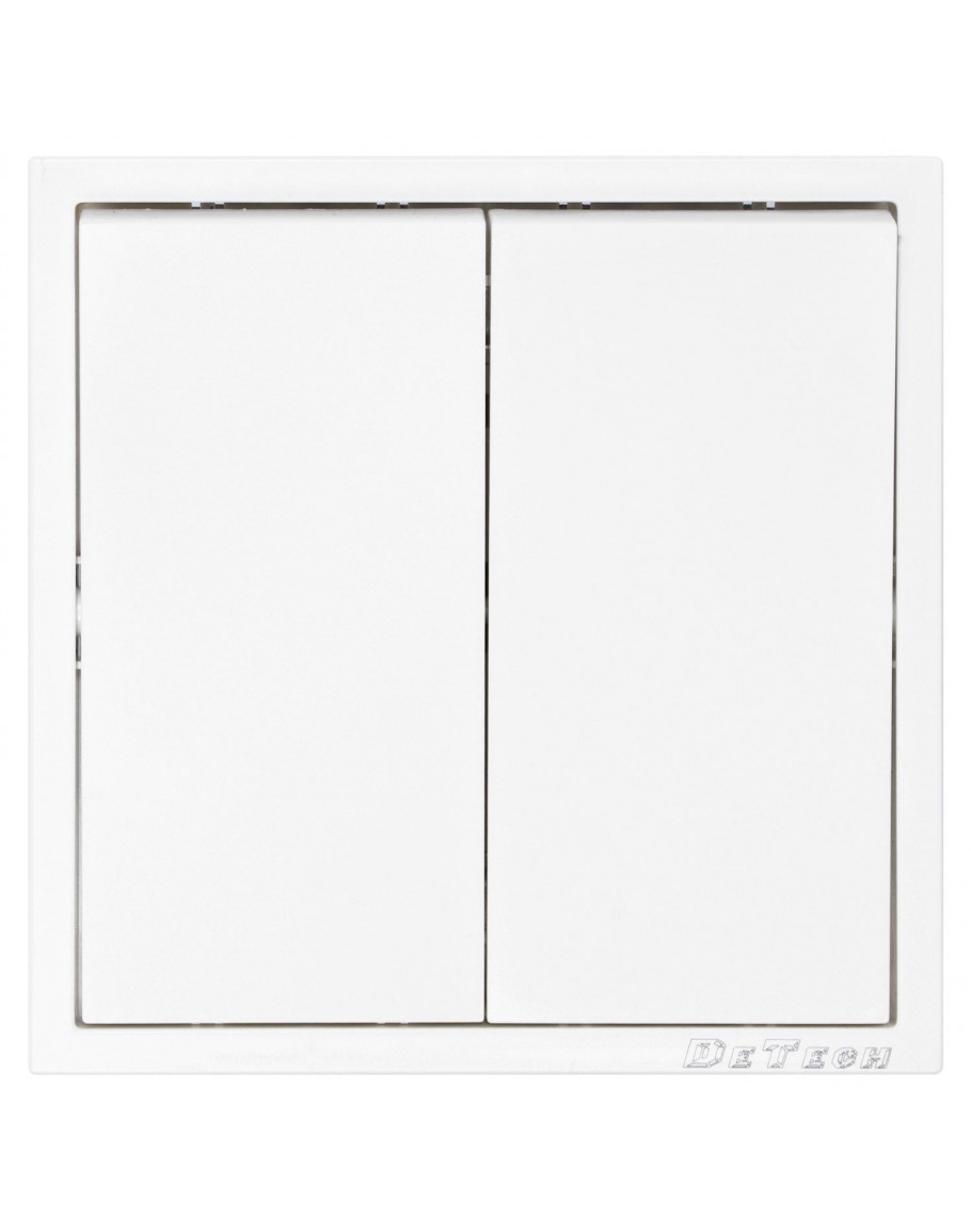 Двоен ключ за осветление DeTech DE-9227-02 (схема 5) с класически квадратен дизайн, декоративна рамка и висококачествено матово покритие.