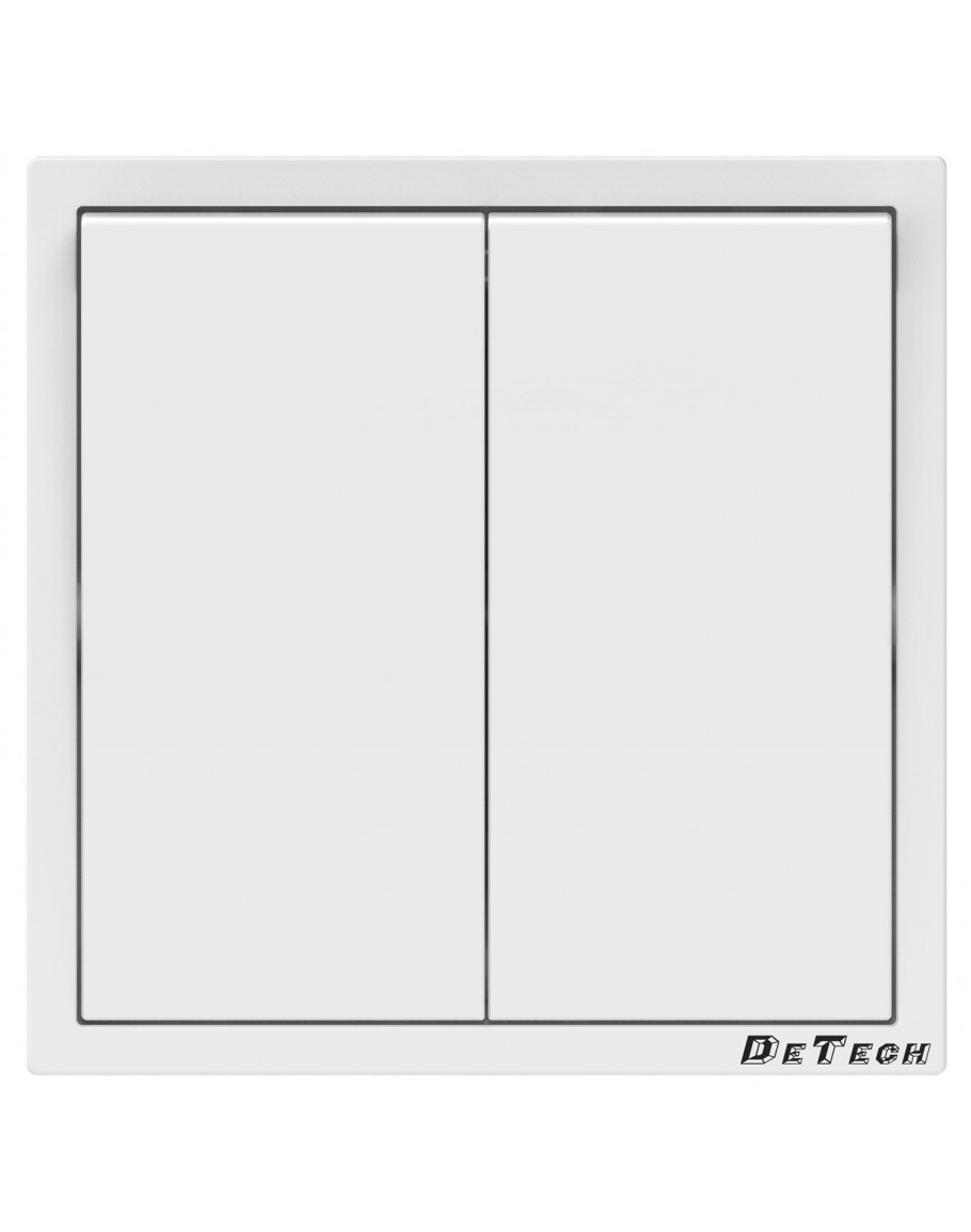 Двоен ключ за осветление DeTech DE-9227-02 (схема 5) с класически квадратен дизайн и декоративна рамка, в бял цвят.