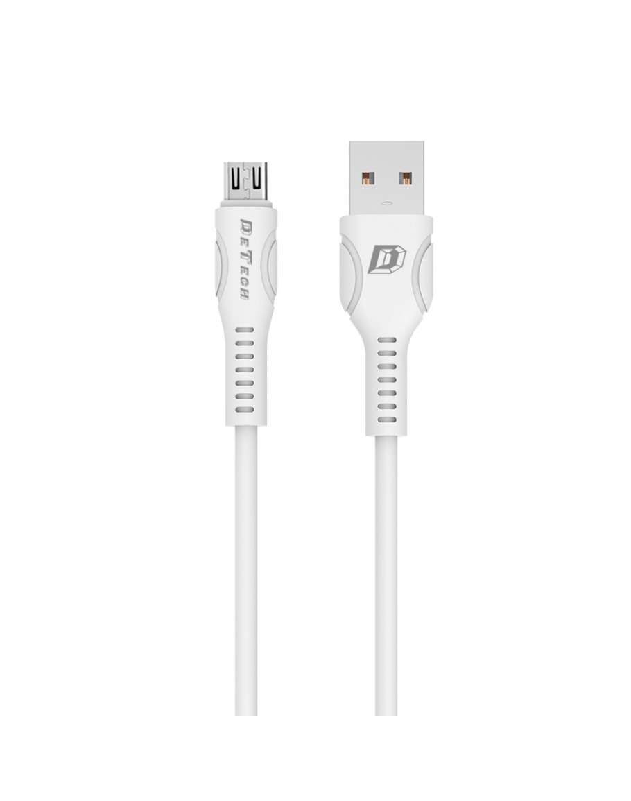 Кабел за данни DeTech DE-C27M, Micro USB, 1.0m, Бял - 40109