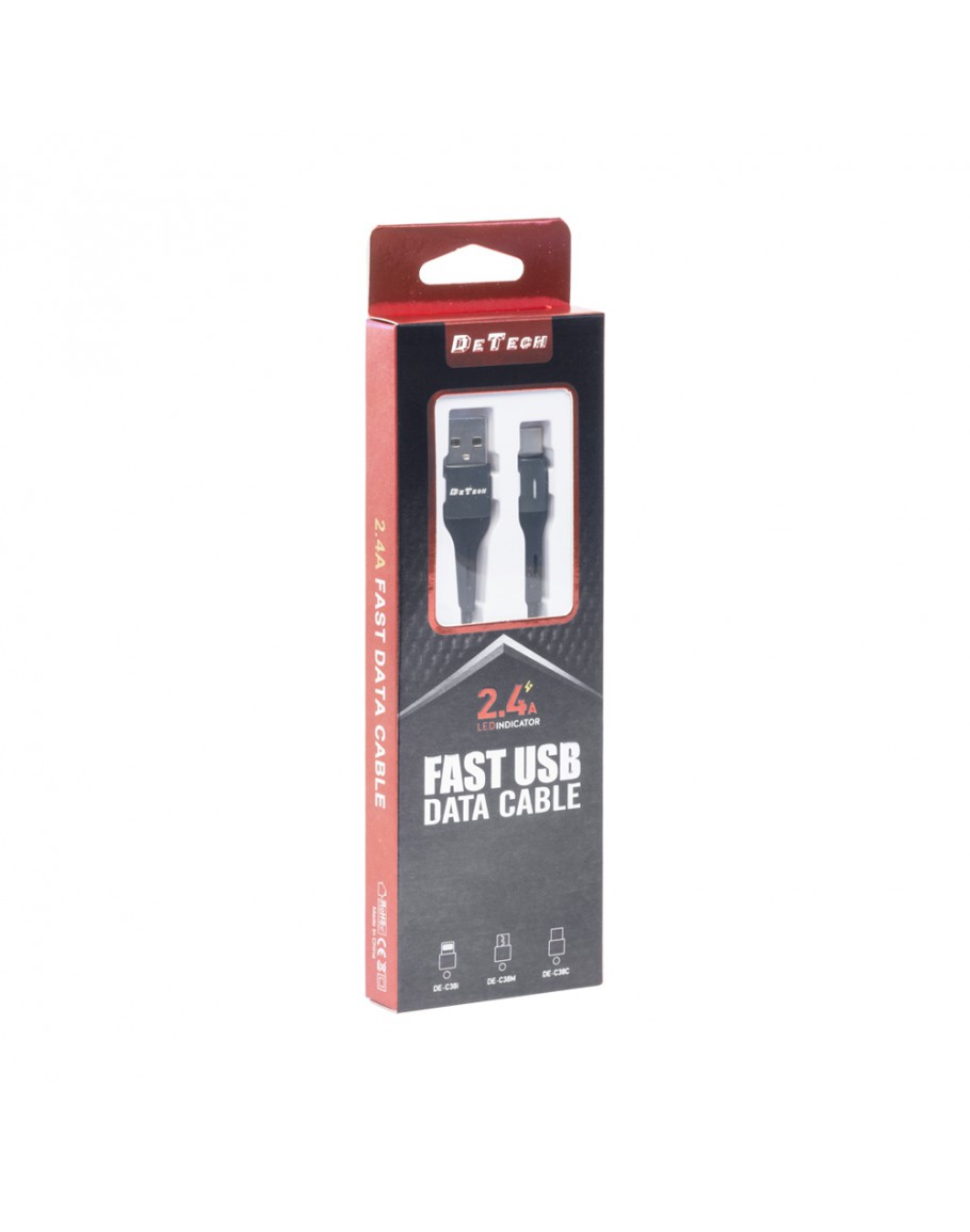 Кабел за данни DeTech DE-C38C, Type-C, 1.0m, Черен - 40199