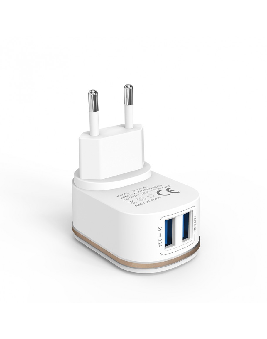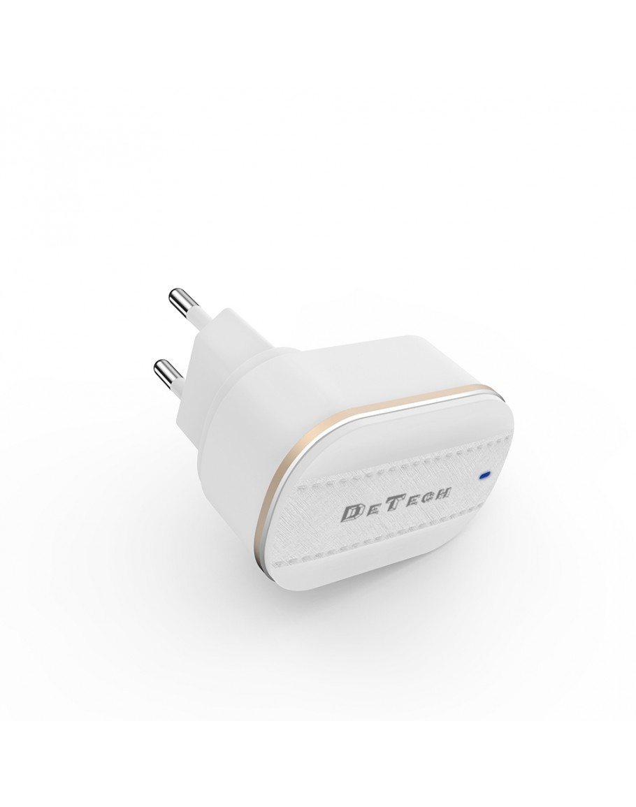 Мрежово зарядно устройство DeTech, DE-15, 5V/3.1A 220V, 2 x USB, Бял - 40095