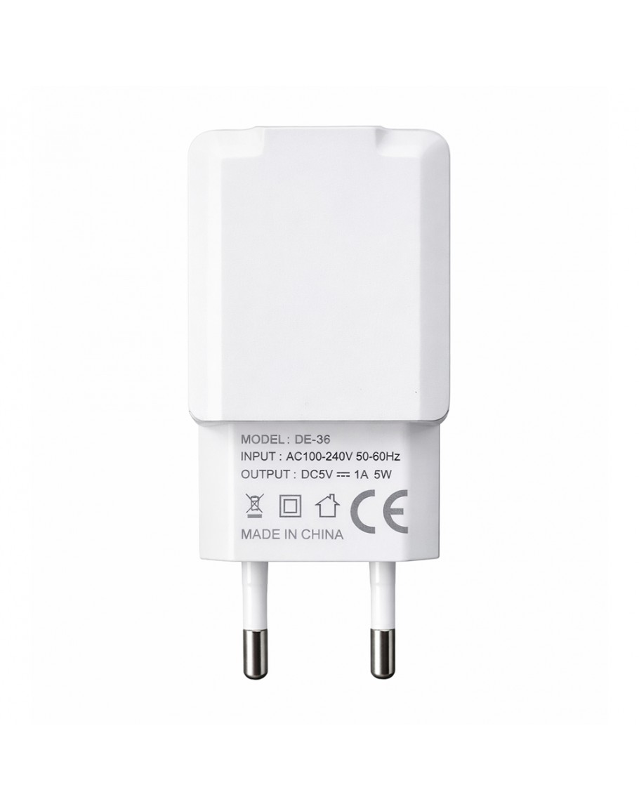 Мрежово зарядно устройство DeTech, DE-36, 5V/1A 220V, 1 x USB, Бял - 40537