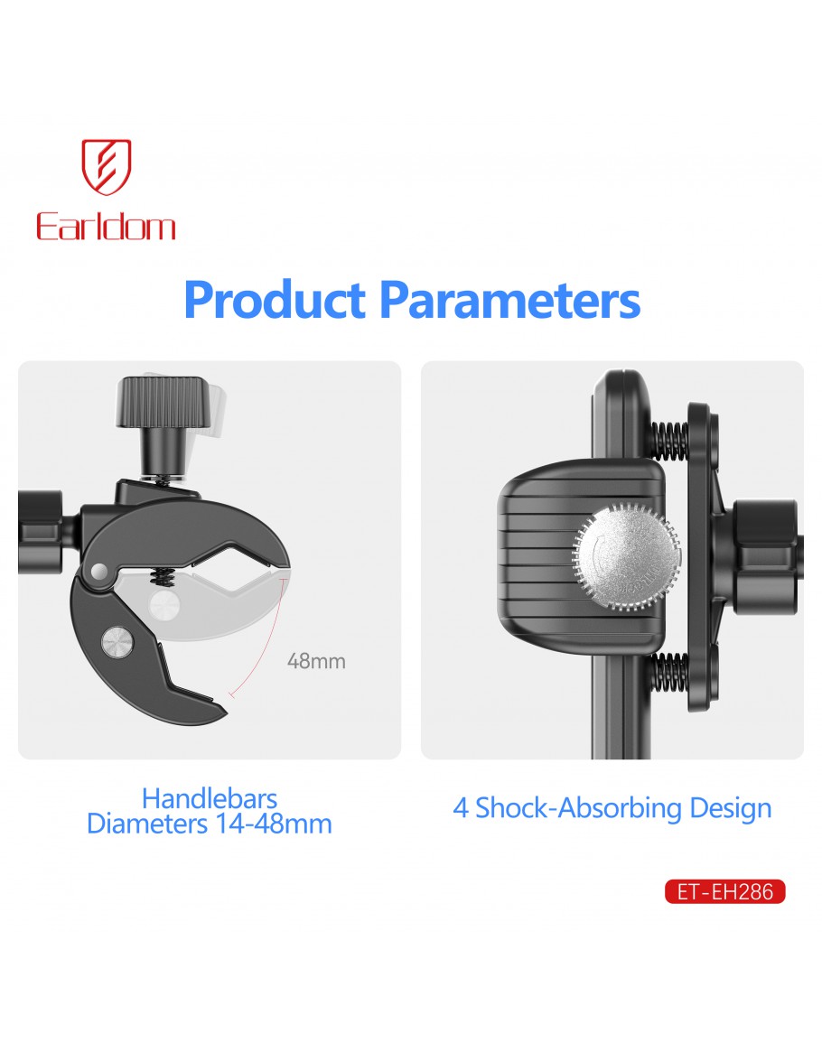 Универсална стойка за телефон, за велосипед, Earldom ET-EH286, Черен - 17898