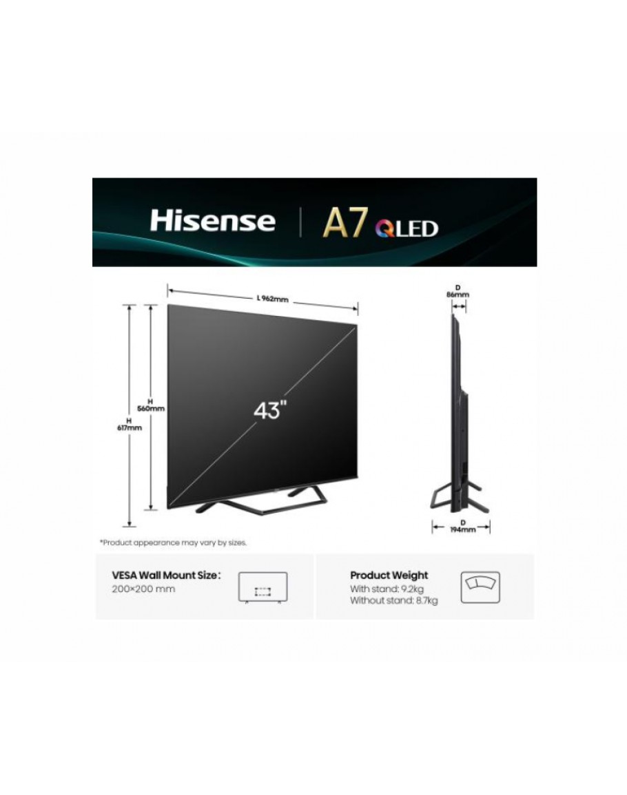 Hisense 43 A7Q, 4K Ultra HD 3840x2160, QLED, FALD,