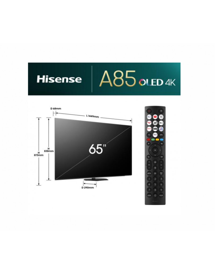 Hisense 65 A85N, 4K UHD OLED Smart TV, 120Hz, HDMI