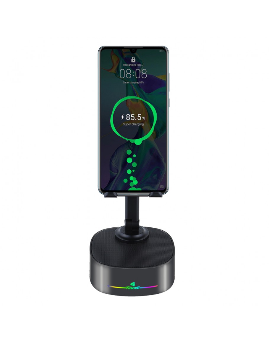 Тонколона със стойка за телефон Kisonli M5, Bluetooth, Безжично зареждане, FM, AUX, RGB, Различни цветове - 22275