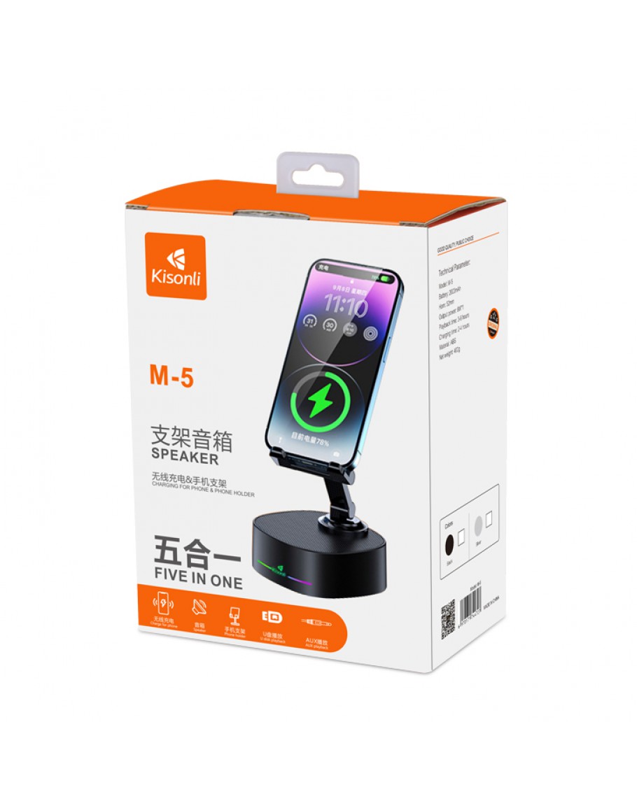 Тонколона със стойка за телефон Kisonli M5, Bluetooth, Безжично зареждане