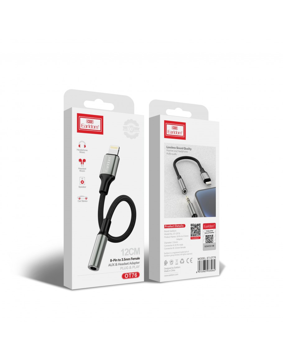 Преходник Earldom ET-OT76, Lightning към 3.5мм (F), Черен - 40365