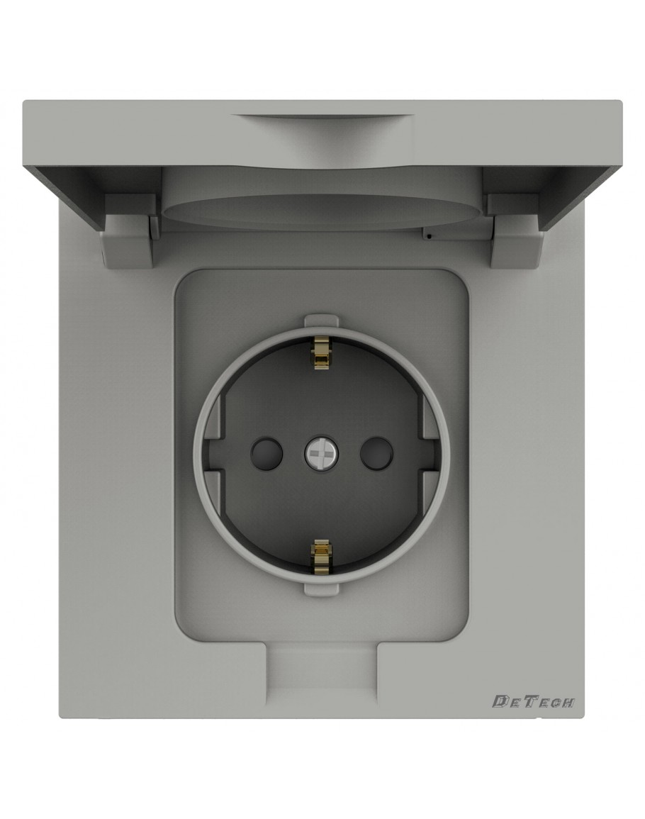 Единичен влагозащитен контакт DeTech DE-9225-45, Шуко, 16А, 250V, IP40, Сив - 75099