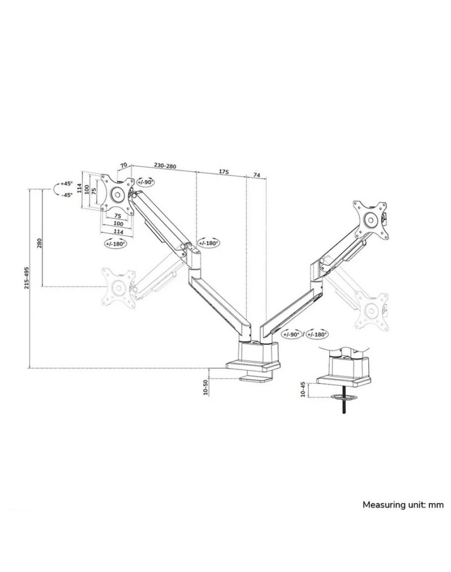 | Наклон | -45° ~ 45° | |