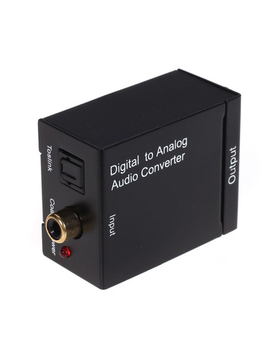 Това e цифрово-аналогов Audio Converter, направен за дома.Той преобразува Toslink или коаксиален цифров аудио сигнали в аналогови L / R аудио и има лесен достъп за връзка с друго устройство, например усилвател чрез стандартни RCA жакове.