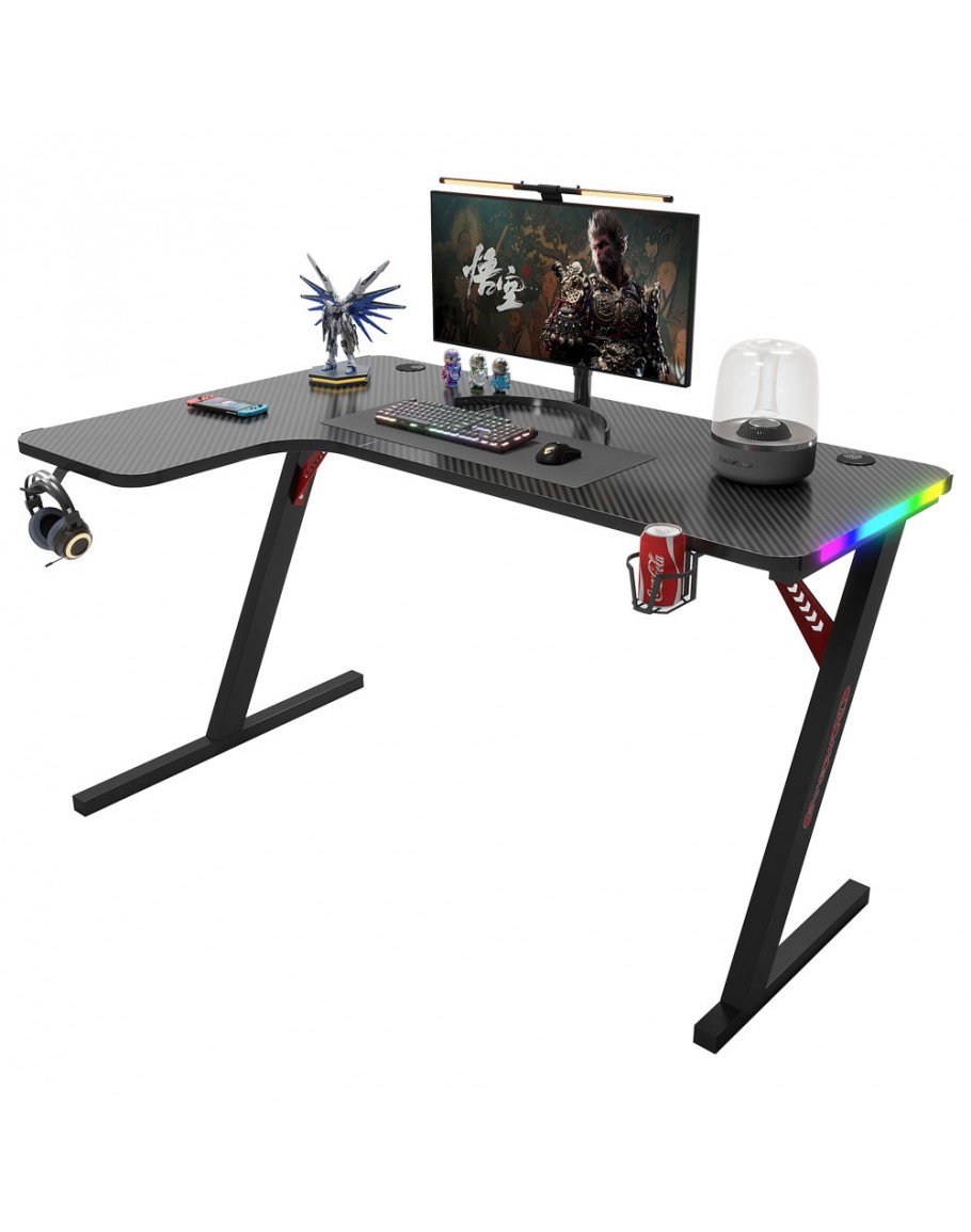 Геймърско бюро 4 в 1 включва поставка за чаша, кука за слушалки и RGB осветление.