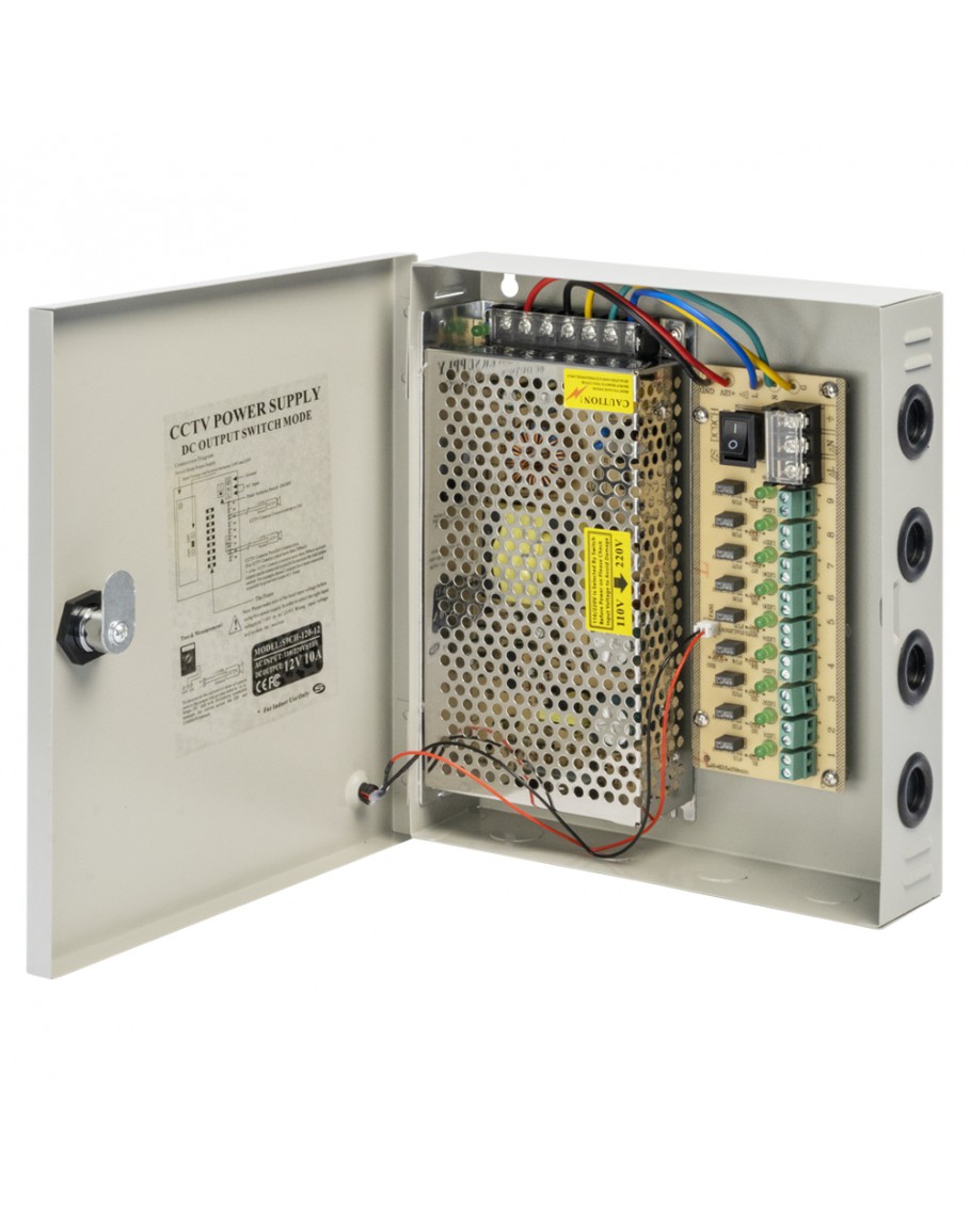Импулсен захранващ блок No brand, 12V/10A, 9 Изхода, Метална кутия, Сив - 344