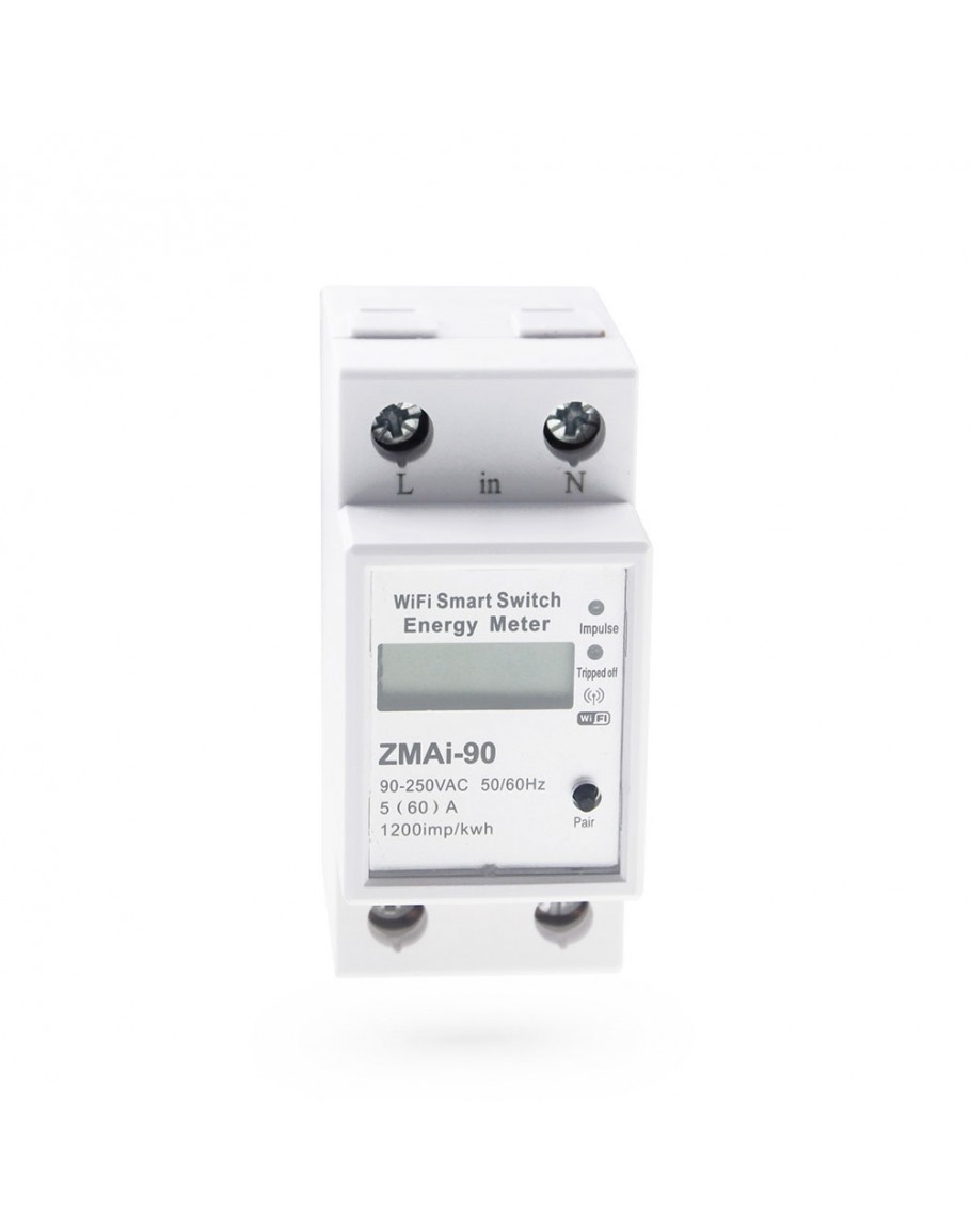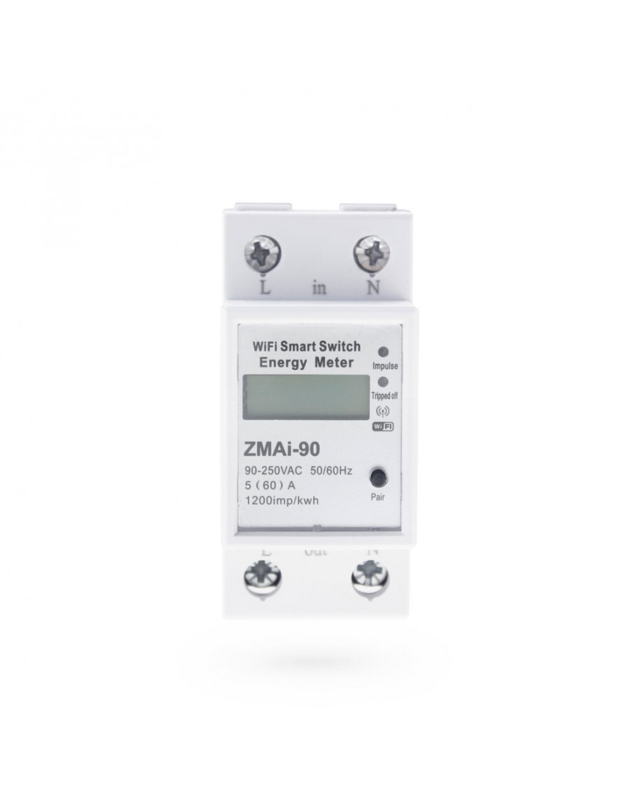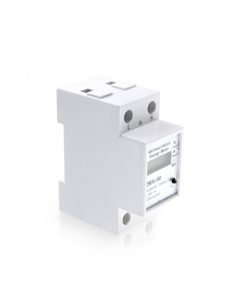 Смарт електромер No brand PST-ZMAi-90, За 35mm DIN, 220V, 60A, Wi-Fi, Tuya Smart, Бял - 91023