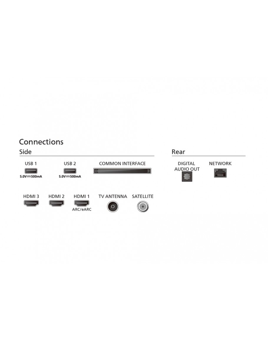 | Изводи за свързване | 3 HDMI, 2 USB, eARC, Digital Audio Output | |