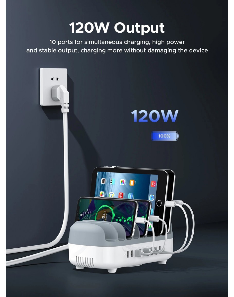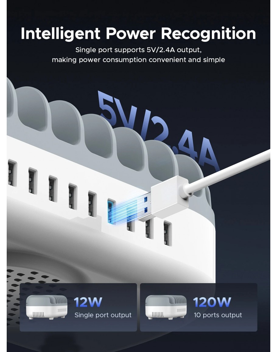 Orico зарядна станция за мобилни устройства Charger Station 220V - 10 x USB 120W white - DUK-10P-EU-WH